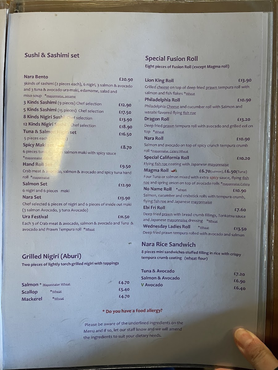 Sushi Nara, located at 21 High St, Staines TW18 4QY, offers an impressive array of Japanese cuisine that delights both sushi lovers and those new to the world of sushi. The menu at Sushi Nara stands out for its balance of traditional dishes and innovative offerings, making it an ideal spot for a variety of tastes and dining preferences.